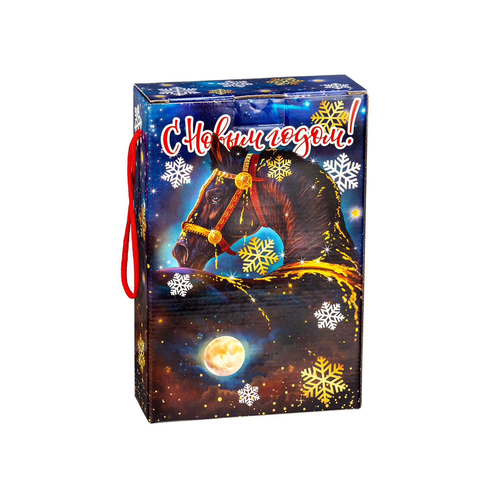 Интересный вариант новогоднего подарка – «Исполнить мечту». Он представлен в разделе Картон. Отлично подойдет на подарок в 2026 году с символом Лошадь. Внутри такого презента находится кондитерский набор весом 1000 граммов.