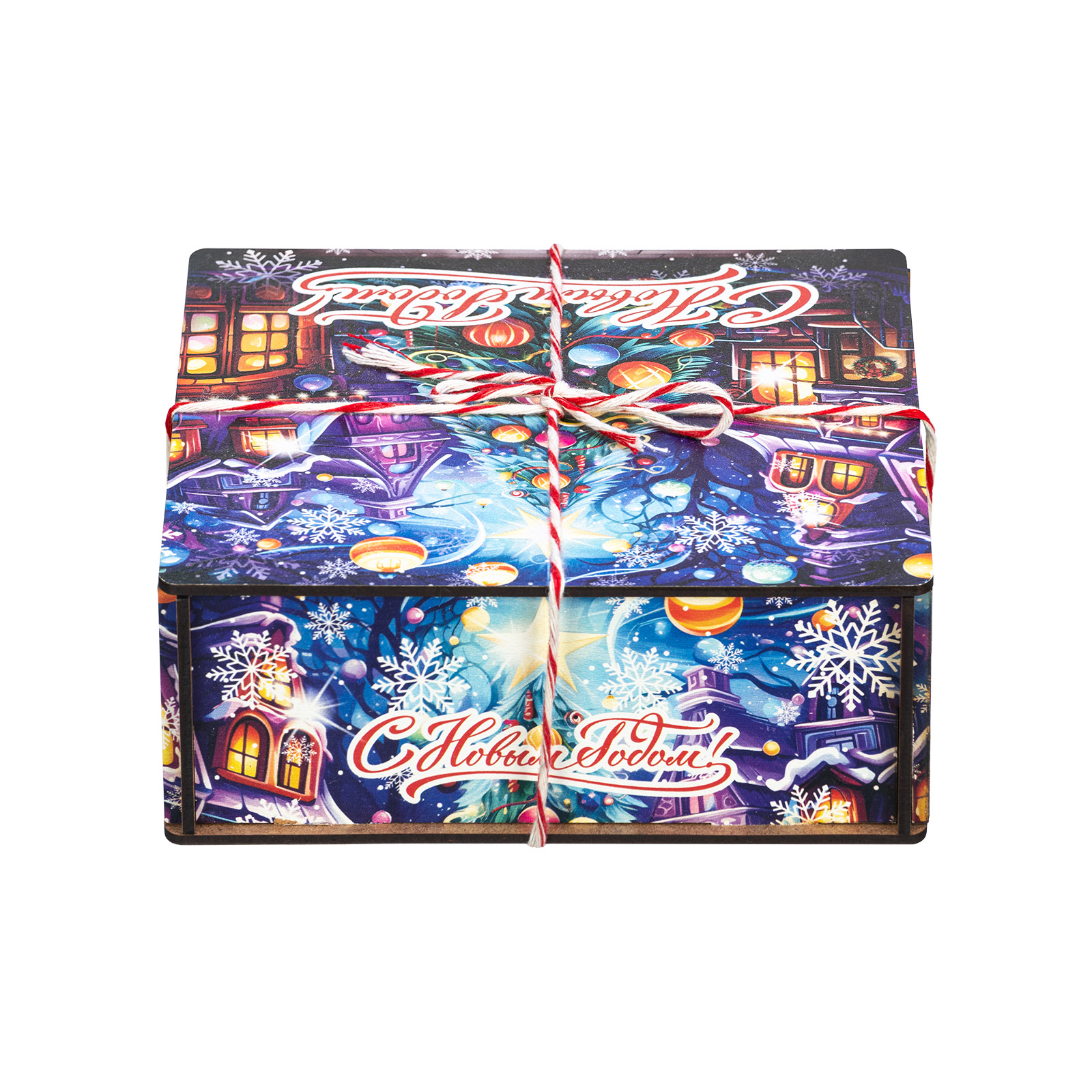Интересный вариант новогоднего подарка – «Хрустальная сказка (Полезный состав)». Он представлен в разделе Дерево. Отлично подойдет на подарок в 2026 году с символом Лошадь. Внутри такого презента находится кондитерский набор весом 700 граммов.