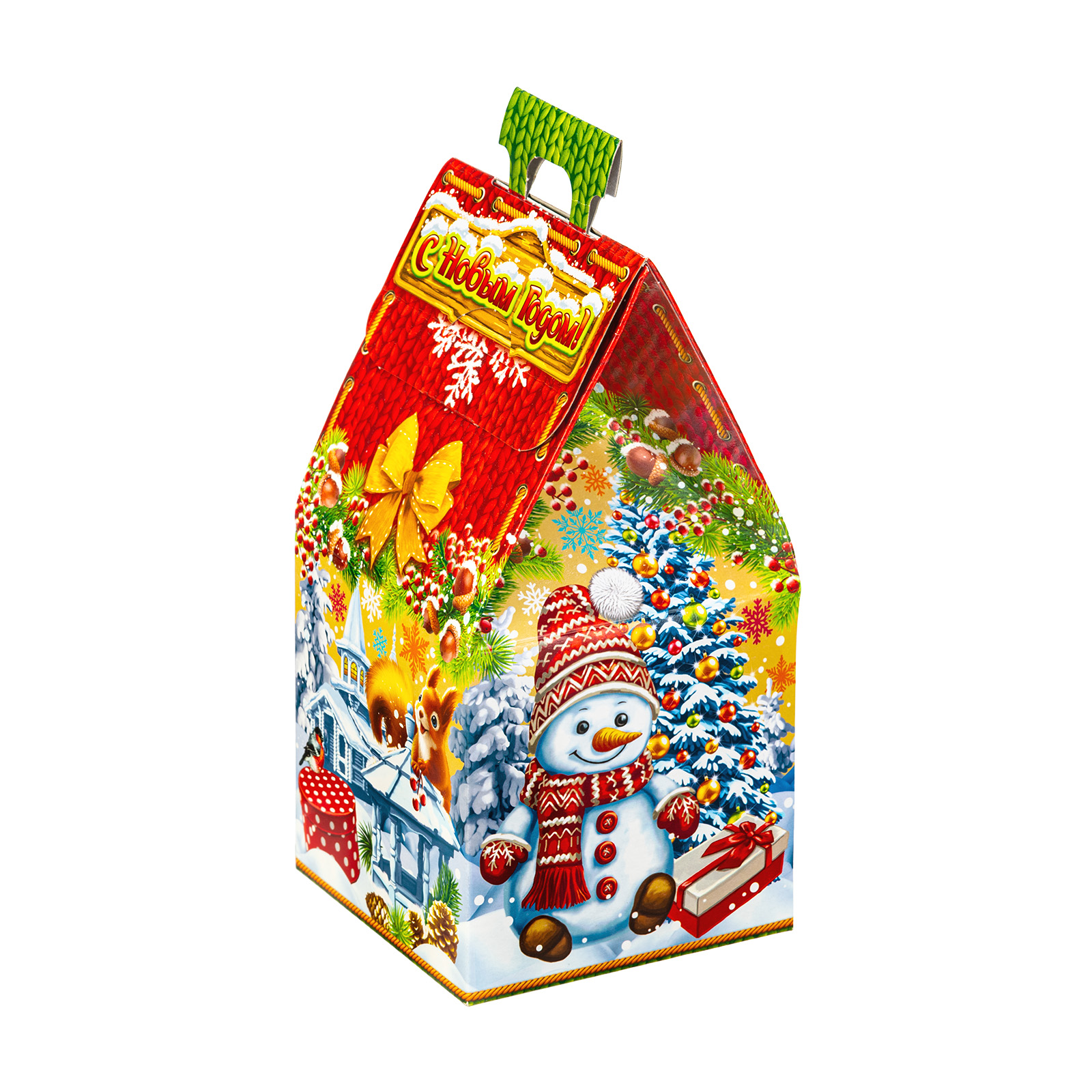 Новогодний сладкий подарок должен обладать не только потрясающим вкусом, но и яркой оригинальной упаковкой, которую поскорее хотелось бы раскрыть! Подарочный набор “Лесная полянка” как раз прекрасно сочетает в себе вкусные лакомства и креативный дизайн упаковки. Более 30 вкусных сладостей и небольшой памятный сувенир бережно упакованы в картонную коробочку в форме домика. Коробка со всех сторон оформлена яркими праздничными иллюстрациями, на которых лесные обитатели и семья снеговиков уже во всю готовятся встречать светлый праздник. Самое время и вам собрать за столом всю семью и угостить их крепким чаем с вкусными сладостями из этого подарка!