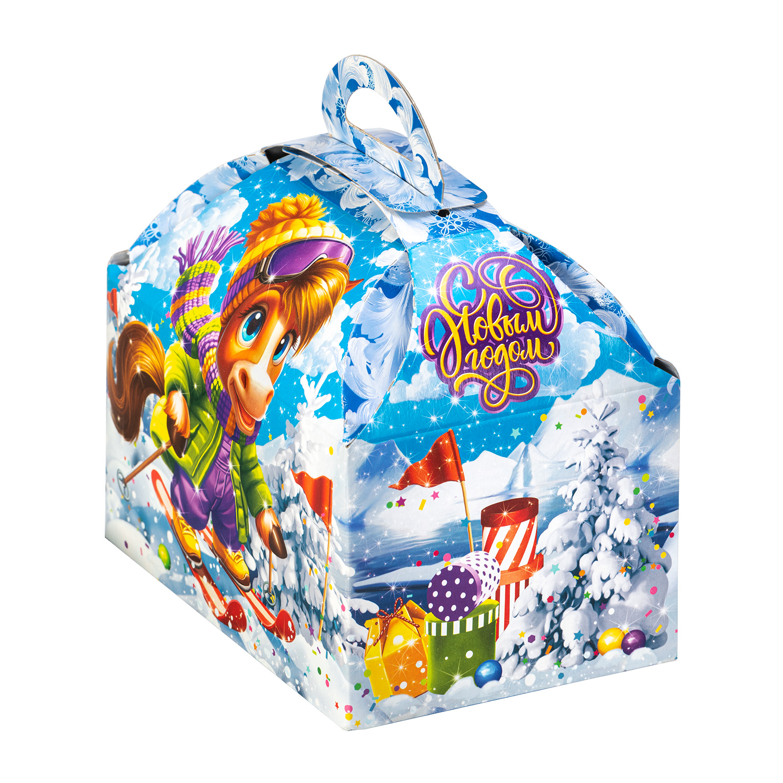 Этот новогодний сладкий подарок в картонной упаковке легко поднимет настроение сластене любого возраста. Тишина уснувшего зимнего леса вдруг резко была нарушена одним веселым лыжником, который с вихрем пронесся по снежным просторам. Судя по выражению его довольной мордочки, заезд прошел замечательно - самое время отогреваться горячим чаем с вкусными сладостями! Присоединяйтесь и вы, ведь сладостей в этом наборе хватит на все новогодние праздники! Кроме того, в состав подарка входит небольшой памятный сувенир, который еще долго будет напоминать о веселых новогодних днях.