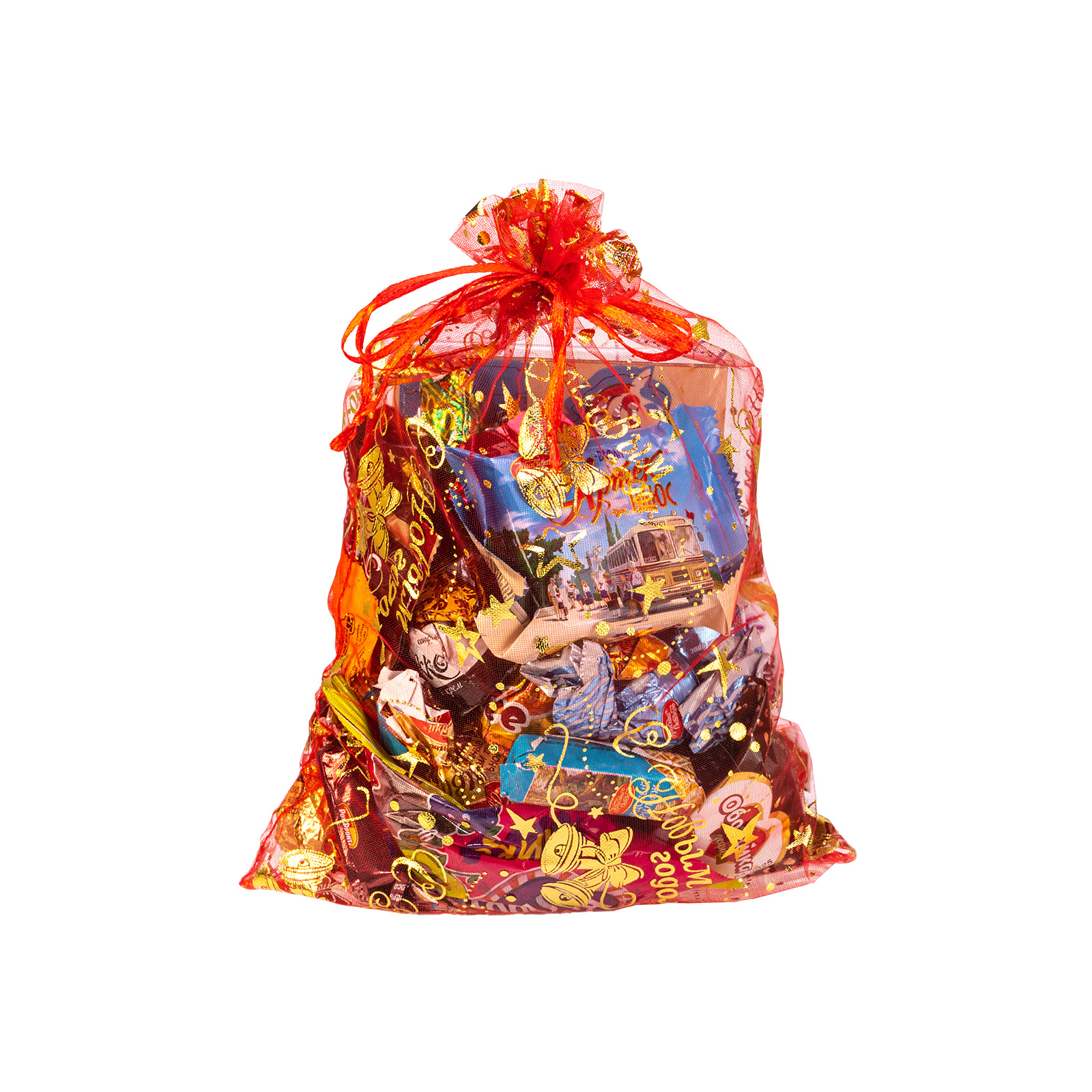 Формула идеального новогоднего сладкого подарка проста: привлекательная яркая упаковка и вкусные сладости внутри! Именно такими качествами и обладает подарочный набор “Колокольчики”! Это ярко-красный текстильный мешочек, украшенный со всех сторон золотистыми звездочками. Сверху он прочно перевязан маленькой аккуратной веревочкой, потянув за которую, вы откроите самый настоящий ларец с сокровищами. В мешочке бережно хранятся отборные лакомства под любые вкусовые предпочтения - даже самый привередливый сластена найдет здесь свой любимый десерт. Также в состав подарка входит небольшой памятный сувенир в виде символа наступающего года. Благодаря ему, праздничное настроение в вашем доме будет царить и после новогодних праздников!