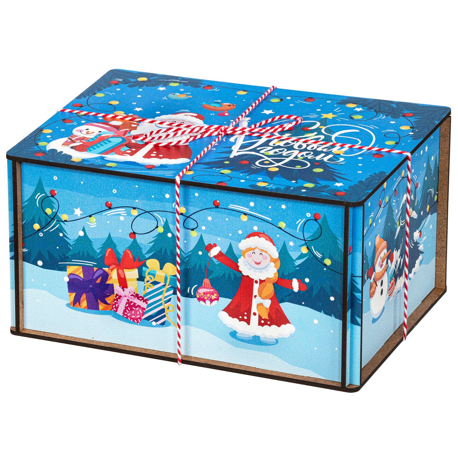 Подробнее о доставкеЕсли вы хотите подобрать интересный подарок для детей, то рекомендуем обратить внимание на презент «Посылка Гирлянды». Данный вариант представлен в упаковке из дерева. Размер короба 21*11*16 сантиметров. Общая цветовая гамма синяя. На рисунке Дедушка Мороз и Снеговичок как главные персонажи праздника. По краям декор их ветвей елок. Сладкое содержимое весом 1000 граммов пестрит разнообразием вкусов и ароматов. В составе есть шоколадные конфеты от легендарных фабрик, новинки от региональных, вкуснейшие десерты, печенье, вафли и многое другое. Отличное сочетание цены, веса и состава.